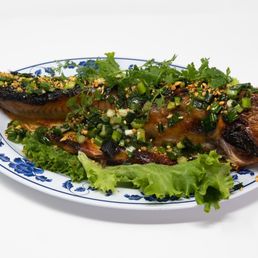 4.4 stars This is one of my favorite restaurants in the SGV. What I really like about them is 100% food & service-based. The ambiance is just casual. What we usually order when my large family gets together (between 8 - 16 people): Large ($89)/XL (?) catfish: A must order if you have a large family. The fish is baked/roasted until the skin is crispy & served whole, topped with oil scallions. I recommend the large b/c it is meatier than the smaller ones. The smaller ones are pretty bony. When you order this, it comes with banh trang (rice paper), fresh veggies/herbs/pickled carrots & daikon, & sauces. Those are refilled when the table runs low on ingredients. Bo nuong la lot: this is seasoned ground beef wrapped in betel leaves - grilled. In the past, the beef used to be a larger portion, but it has since gone through shrinkflation. A large comes with 10 beef rolls for $22. Still worth the splurge for me :) Dia Thit Nuong: Grilled pork that is sliced & served with fresh romain lettuce, cucumber, tomatoes, & oil scallions. The oil scallions are delicious! I believe this is now $24 per plate. Cha Gio: Eggrolls are always a hit, but it's 5 rolls for $14. Again, worth the splurge to me. Not too salty...just deep-fried perfection. Don't remember the name of this dish, but it is the grilled beef rolled w/ onions. This is pretty good too, but I think it's expensive for what it is. And this is something easily made at home, I think. This is definitely a popular restaurant & I do recommend coming early for lunch/dinner. If you're a fan of Vietnamese food & would like to portions for lots of people, this is the place to be! Service is also pretty great, too. Also, free parking on site.