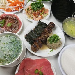Came here on Saturday for lunch to celebrate Father's Day and getting a new job. We were a group of 7 and luckily we had the waiter who is super nice and a jokester-really inspired by him, you are awesome!!! I was nervous because everyone in my group had never had 7 courses of beef and it had been a while for me and wanted everyone to enjoy it and like it. We ordered two orders of the 7 course, large thit nuong, large special fried rice and 1 Bo lot lat. It was the perfect amount, everyone was full and satisfied and we all finished it! Was told one order of 7 course feeds 2 people. The fried rice was especially delicious! I love all courses of the beef but my sister especially liked the beef paste and porridge. My MIL loved all the fresh and plenty herbs and vegetables that came with it. Large place so great for big groups and to celebrate special occasions! The wait was not long at all. Highly recommend!